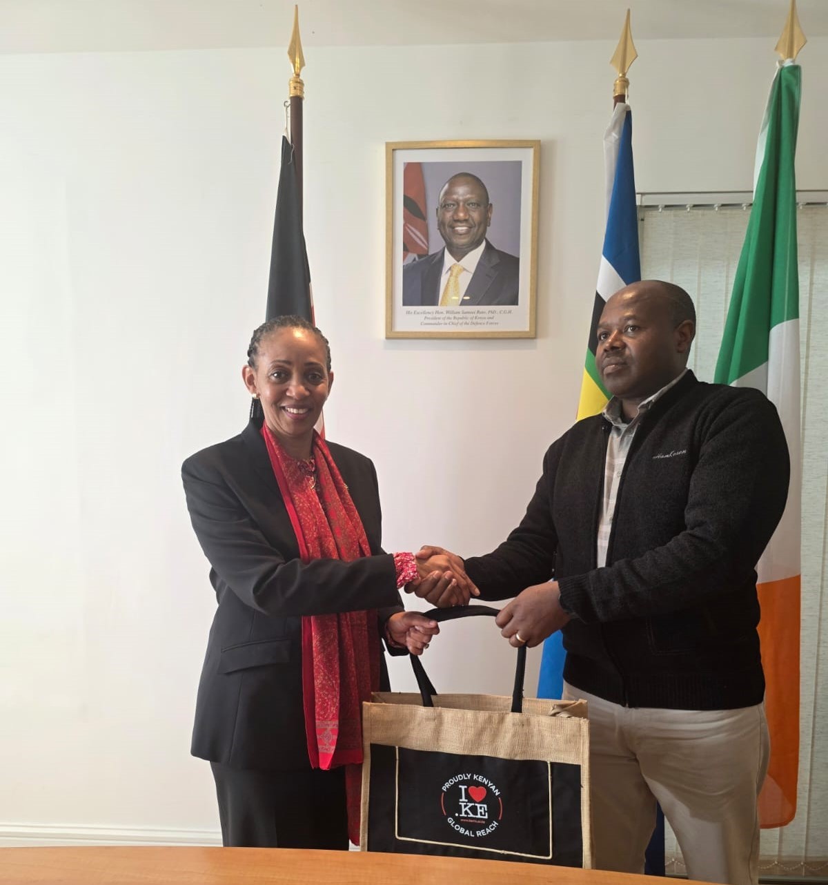The Director of ICT at the University of Nairobi and Chairperson of the Kenya Network Information Centre (KeNIC) Board of Directors, Mr. Paul N. Kariuki, led a delegation to the Embassy of the Republic of Kenya in Ireland for a courtesy call on H.E. Ambassador Tabu Irina, MBS.
